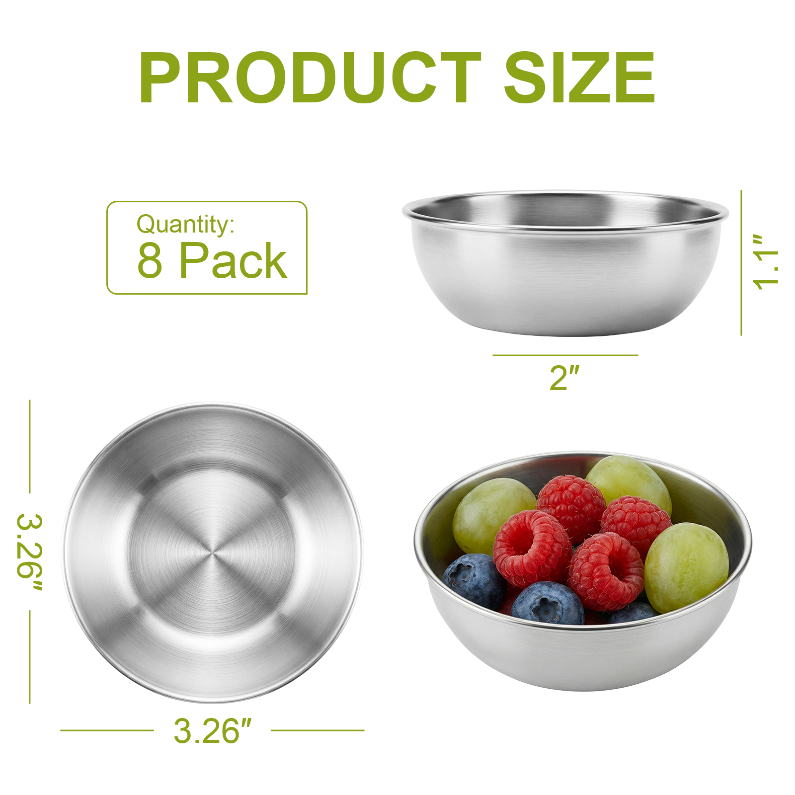 At Tifanso, we believe that exquisite food deserves equally exquisite vessels to showcase it. Whether you're using them as dipping bowls for savory sauces, elegant sauce dishes for gourmet meals, or versatile small bowls for dips during gatherings, this 8-piece set is designed for every occasion. Perfect as condiment bowls for spices and sides, these premium stainless steel bowls offer durability and timeless style. Ideal as dipping sauce bowls for appetizers or main courses, this 8-piece stainless steel silver condiment set adds a touch of elegance and poise to your table. Crafted from premium stainless steel and meticulously polished through multiple processes, it achieves a pure silver sheen—unobtrusive yet capable of illuminating every dipping sauce cups and side dish.