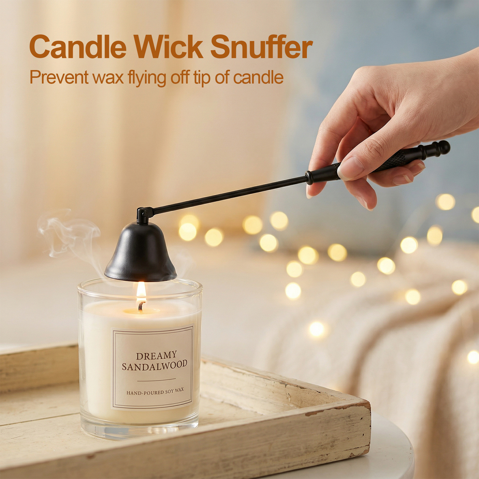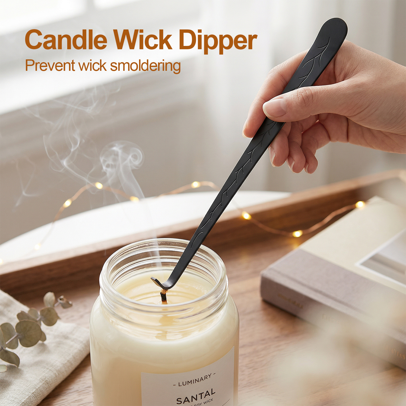 Dual-purpose candle kit acts as both a wick dipper and a candle snuffer. It elegantly extinguishes candles by cutting off oxygen—no blowing required. This candle extinguisher snuffer effectively prevents ash and smoky odors, making it a safe candle put out tool.