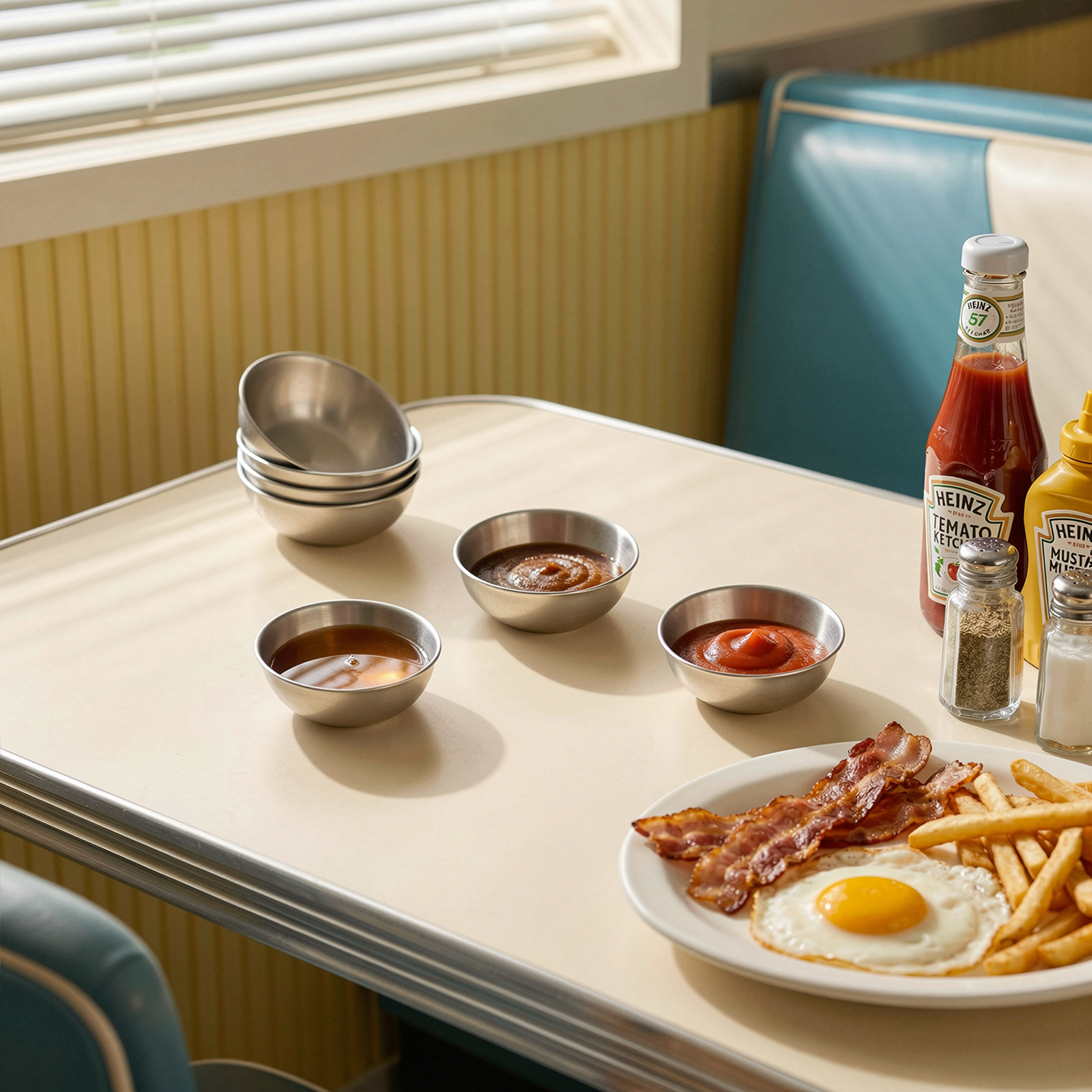 This set of condiment bowls is crafted from food-grade stainless steel, a widely recognized premium material for tableware. Whether used as sauce dishes, dipping sauce bowls, or sauce dishes for dipping, designed to hold acidic condiments like vinegar, lemon juice, and ketchup, it never releases odors, ensuring your food retains its original flavor. There is no risk of chemical coatings peeling off from these versatile sauce bowls.