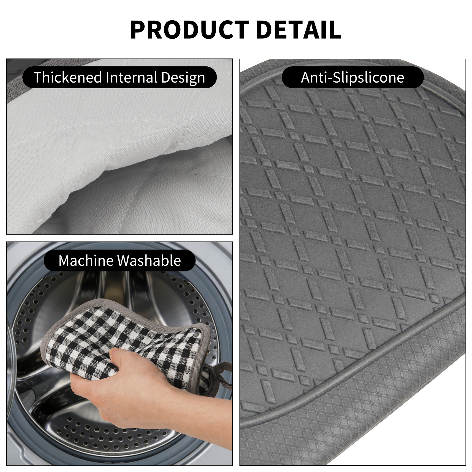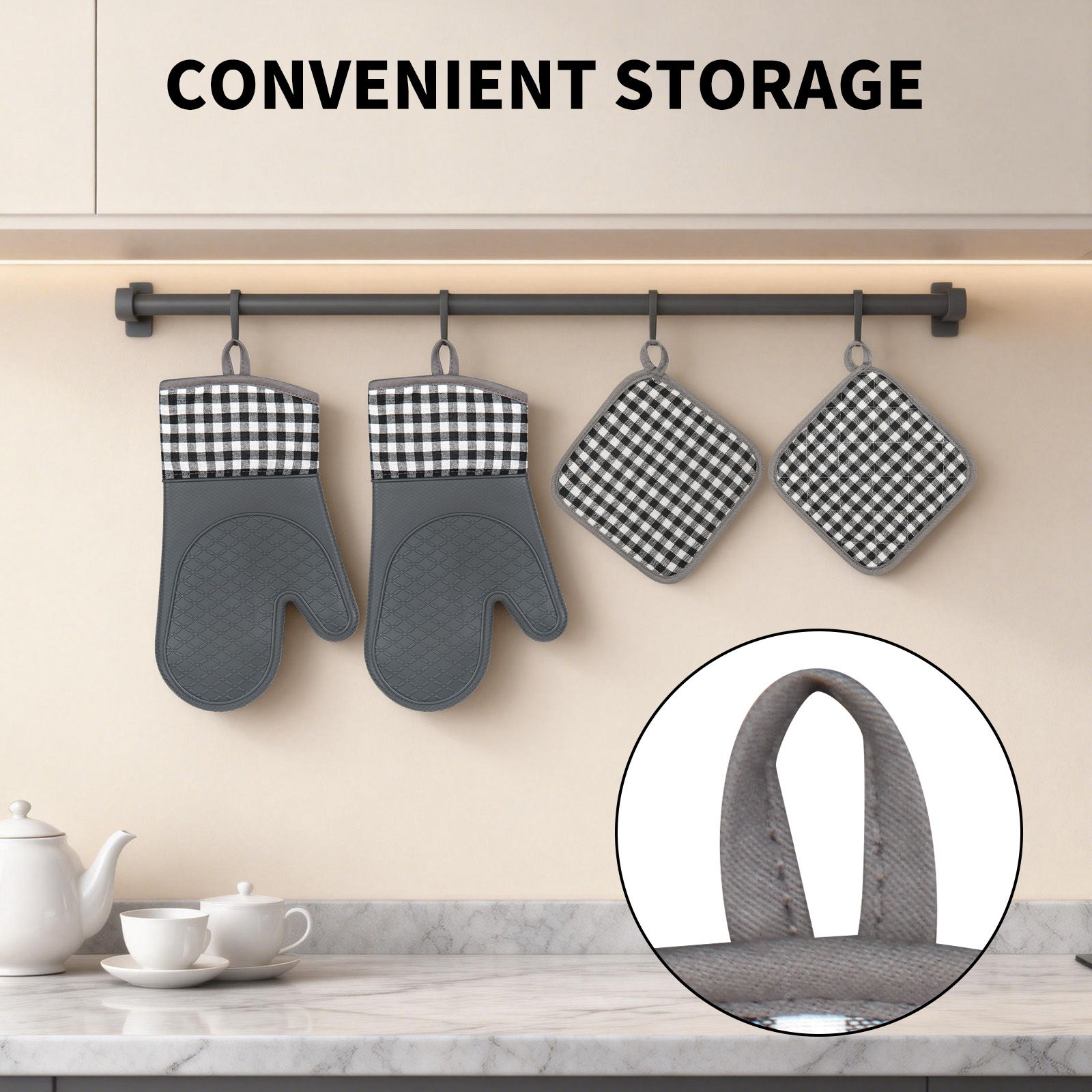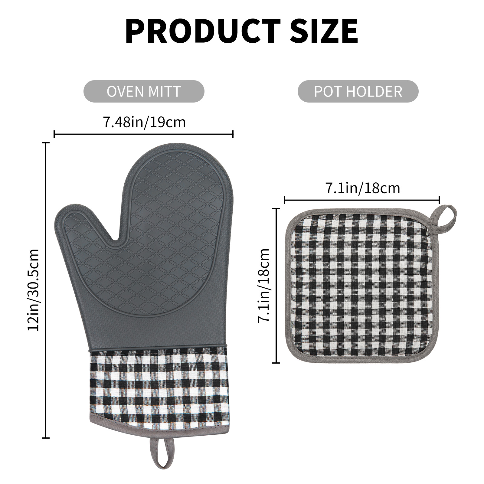Kitchen mitts for oven cover the back of the hand, fingers, and forearm, functioning as secure cooking mittens. The oversized pot holders heat resistant in this kitchen mitts and pot holders set fully envelop pot bases, effectively preventing scorch marks on tabletops.