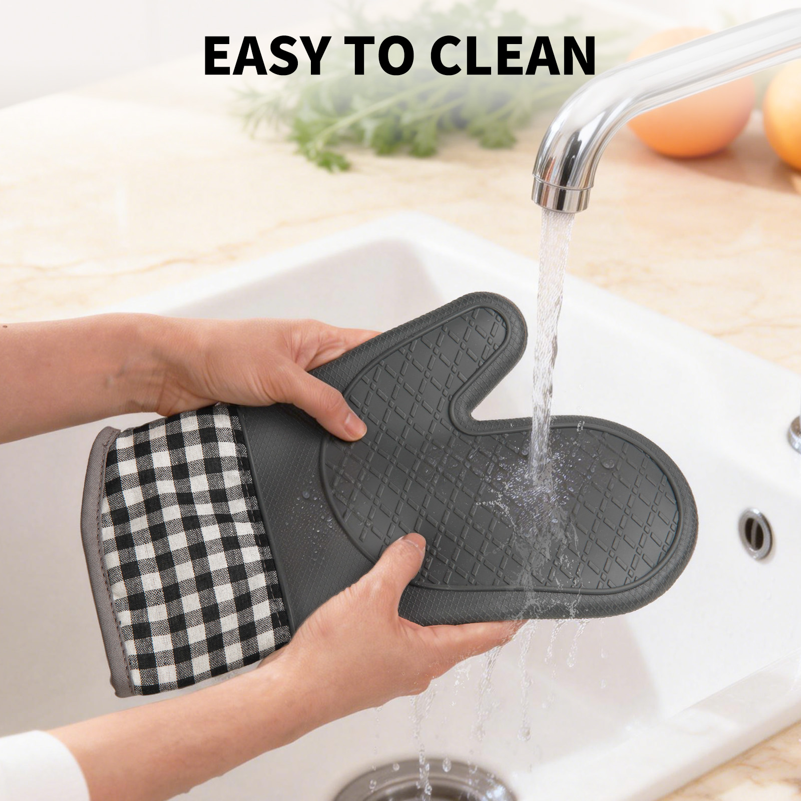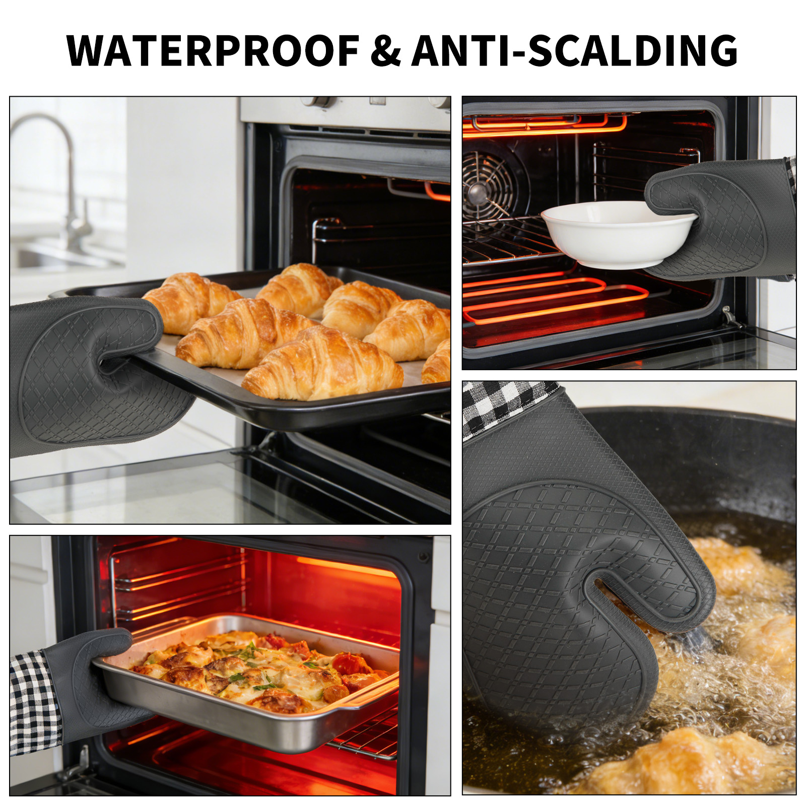 Crafted from premium silicone oven mitts material, these heat resistant oven mitts maintain stability in high-temperature environments, resist deformation, and release no harmful substances. This oven mitt and pot holder set is a home kitchen apartment essentials.