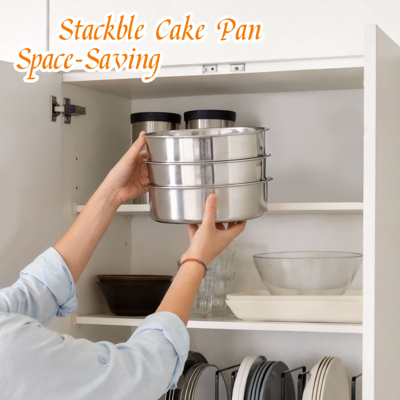 Tired of cluttered bakeware drawers? Tifanso cake pans solve this with an innovative stackable design. Crafted from high-quality stainless steel, these baking pans store neatly together. They ensure even heating for perfect bakes and feature a safe, non-toxic surface, combining smart storage with reliable performance in one essential baking pan.