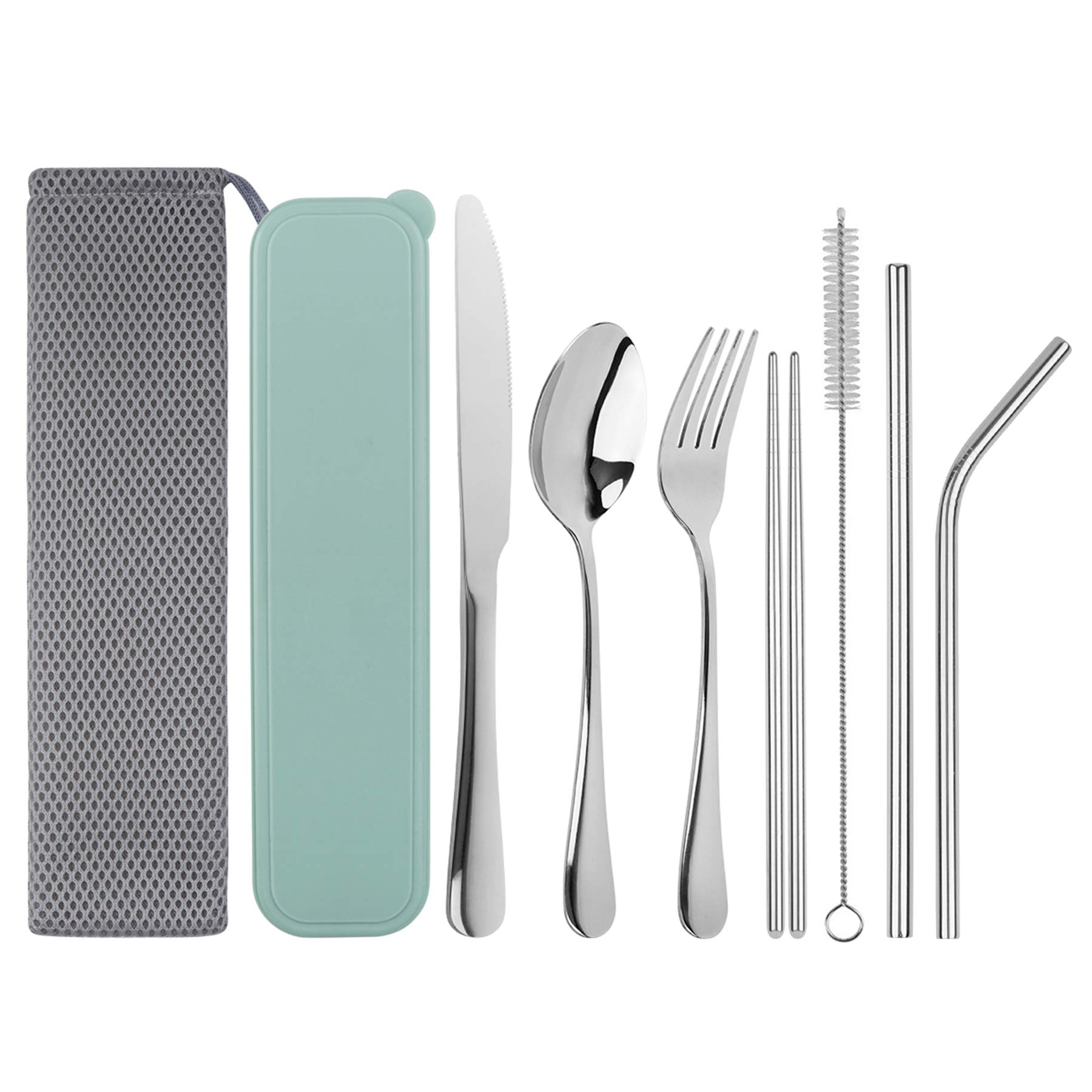 These flatware sets include knives, forks, spoons, chopsticks and stainless steel straws which are all pocket-size. With carrying cases, these flatware sets are convenient to be carried in a backpack or purse. Lightweight so you can enjoy your meals either you are at home or work.